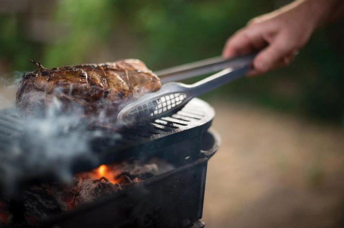 Розкочегаруємо гриль, ставимо мінімальний вогонь і печемо по тридцять хвилин з кожного боку.